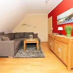 Une cuisine complète comprend un micro-ondes et un réfrigérateur pour un séjour confortable. Les installations indépendantes comprennent également une cafetière/théière. Restaurant Sudhauk attire les hôtes avec ses spécialités de la cuisine allemande.